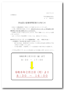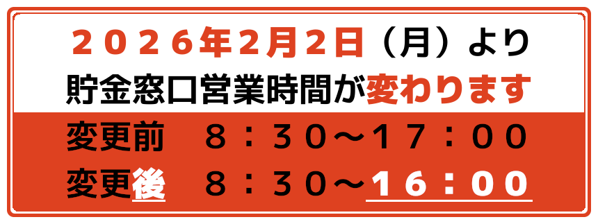 - 2026年2月2日(月)より貯金窓口の営業時間を変更いたします